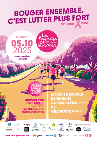 L’association La Fougeraise Lutte Contre Le Cancer est aussi un événement sportif qui a lieu le premier dimanche du mois d’octobre, dans le cadre d’Octobre Rose, la campagne annuelle de communication destinée à sensibiliser au dépistage du cancer du sein et à récolter des fonds pour la recherche.Créée en 2015 à l’initiative de la ville de Fougères, l’association rassemble une équipe de partenaires, de bénévoles, de membres d’associations sportives et culturelles.